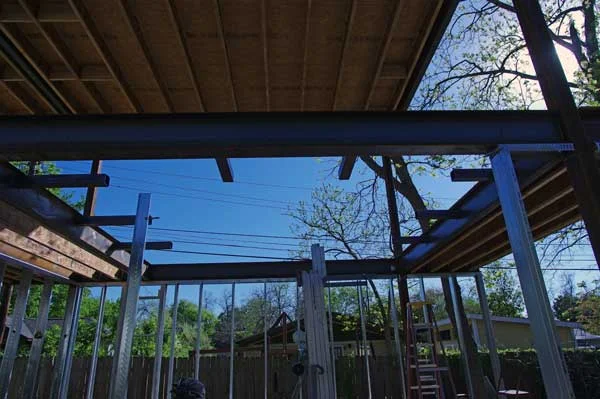 Work continues on Studio & More. Tim, Jerry and Albert arrived a few days ago to continue where we left off in December. Our goal for this push is have the stairs and catwalk installed, which will complete all principal steel work, install windows and doors, and have the exterior weathered in.